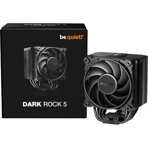 Il Dark Rock 5 dispone di 6 heatpipe in rame ad alte prestazioni e di un rivestimento nero speciale con particelle di ceramica. La ventola Silent Wings PWM è dotata di cuscinetti fluidodinamici durevoli, motore a 6 poli silenzioso e pale ottimizzate per il flusso d'aria. Una copertura magnetica in mesh nasconde le heatpipe. Per una pressione dell'aria ancora più elevata, è possibile installare opzionalmente una seconda ventola all'uscita. Grazie a una piastra di raffreddamento nichelata, il Dark Rock 5 è compatibile con paste termiche a metallo liquido come la DC2 Pro. Le caratteristiche della connessione a metallo liquido in combinazione con il Dark Rock 5 consentono alle CPU high-end di ottenere prestazioni ancora più elevate.